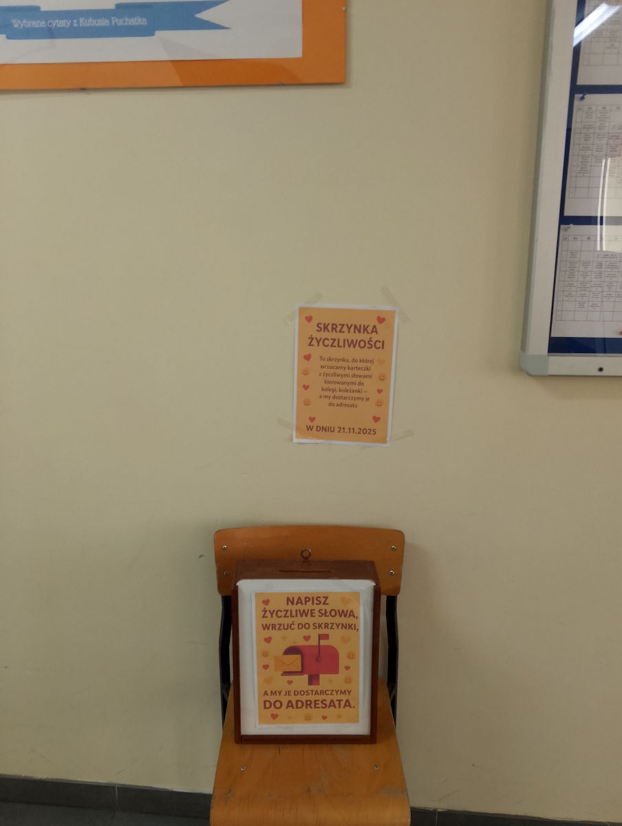 W Dniu Życzliwości uruchomiono szkolną skrzynkę dobrych słów, do której każdy mógł wrzucić miłą wiadomość dla koleżanki lub kolegi. Wolontariusze zadbali o dostarczenie wszystkich liścików, sprawiając wiele radości ich adresatom. Na szkolnym korytarzu pojawiło się także Drzewo Życzliwości, na którym zawieszano listki z pozytywnymi hasłami i dobrymi życzeniami. Zwieńczeniem tygodnia była akcja przygotowana przez Ligę Morską, której członkowie rozdali swoim rówieśnikom zdrowe śniadanka, promując właściwe nawyki żywieniowe.