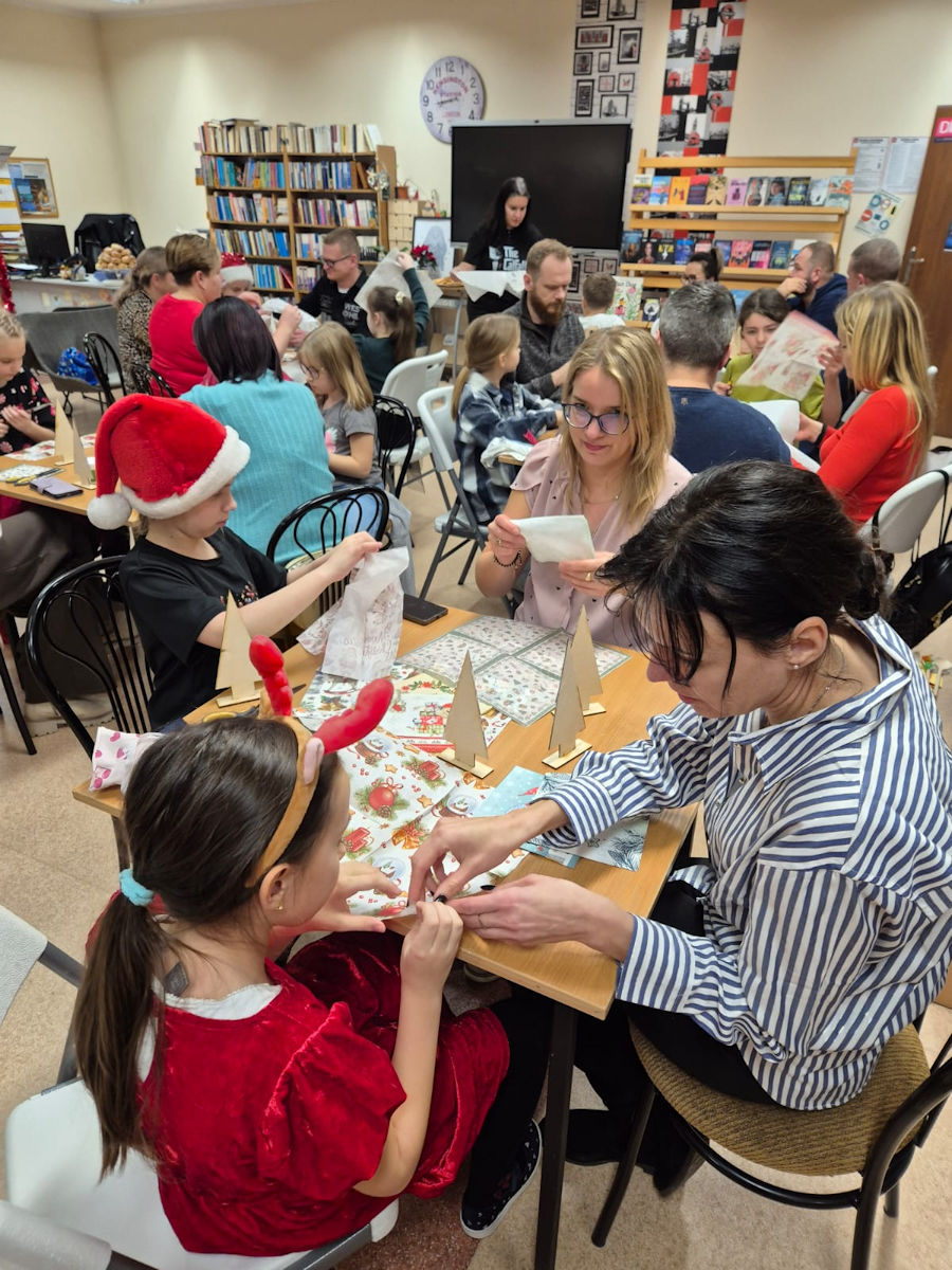 W czwartek – 11 grudnia 2025r. w Bibliotece Publicznej odbyło się spotkanie z rodzicami, które miało na celu wspólne spędzenie czasu, integrację oraz wprowadzenie w atmosferę nadchodzących świąt. W wydarzeniu uczestniczyli aktorzy z koła teatralnego oraz ich rodzice.