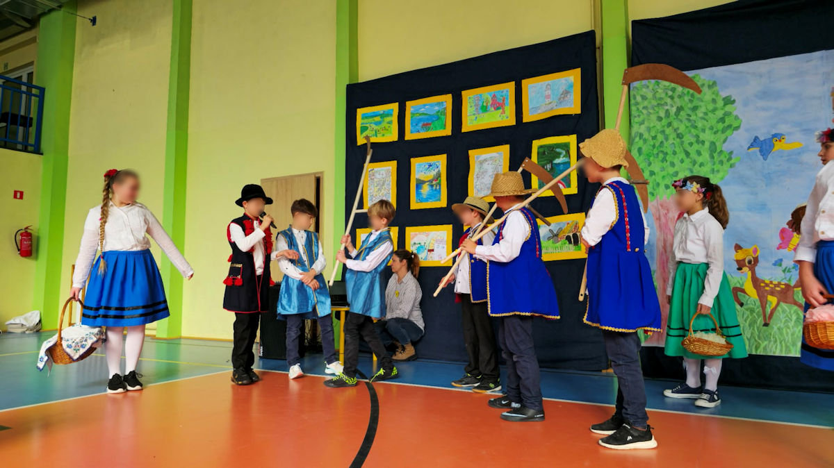 Kaszuby – to nie tylko historia, to żywa, pulsująca kultura, która wciąż ewaluuje. W drugiej części dzieci klas młodszych przedstawiły repertuar bardziej współczesny. Uczennice klasy drugiej zaprezentowały się w piosence E. Pryczkowskiego "Znaczi zymkù" i w wierszu J. Mamelskiego "Dëchë". Natomiast uczniowie klas I zaprezentowali się w układzie tanecznym do piosenki " Tuńce".
