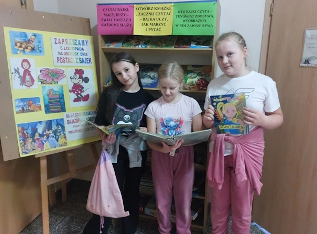 A kiedy już zabawa się zakończyła, postacie powoli wróciły do książek… i wówczas w „Bajkowym kąciku” obok biblioteki każdy mógł oddać się lekturze i jeszcze na chwilę przenieść się do zaczarowanego świata bajek.