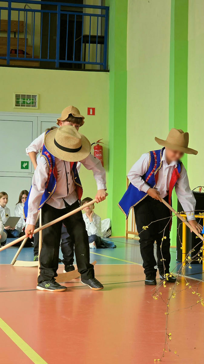 Kaszuby – to nie tylko historia, to żywa, pulsująca kultura, która wciąż ewaluuje. W drugiej części dzieci klas młodszych przedstawiły repertuar bardziej współczesny. Uczennice klasy drugiej zaprezentowały się w piosence E. Pryczkowskiego "Znaczi zymkù" i w wierszu J. Mamelskiego "Dëchë". Natomiast uczniowie klas I zaprezentowali się w układzie tanecznym do piosenki " Tuńce".