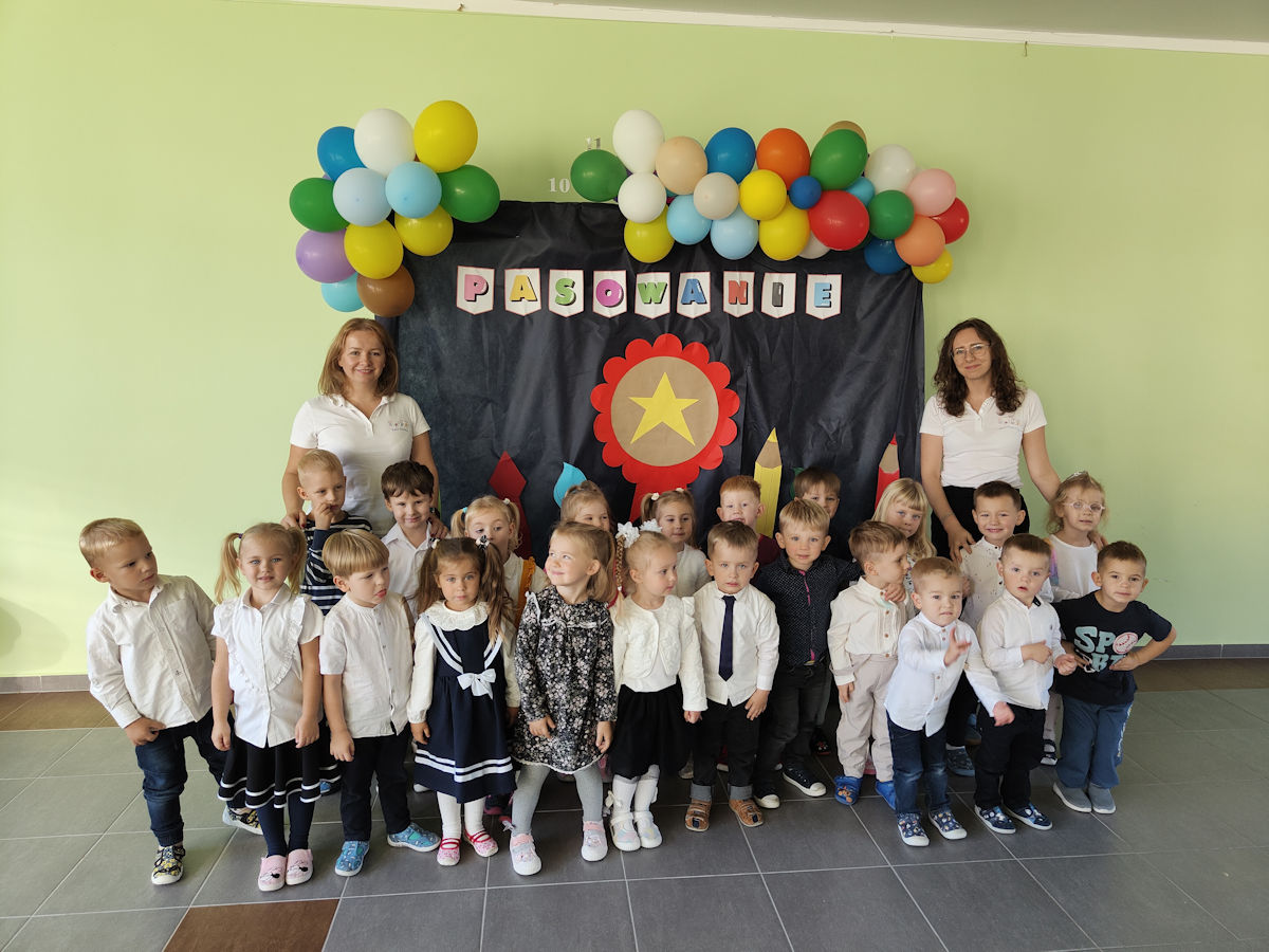 Uroczystość rozpoczęła się częścią artystyczną, podczas której przedszkolaki zaprezentowały swoje umiejętności – śpiewały piosenkę, recytowały wierszyk oraz tańczyły. Po występnie nastąpił najważniejszy moment – akt pasowania na przedszkolaka którego dokonał Pan Dyrektor Adam Młyński. Każde dziecko otrzymało pamiątkowy dyplom oraz upominek. Na zakończenie uroczystości dzieci zajadały się smacznym tortem.